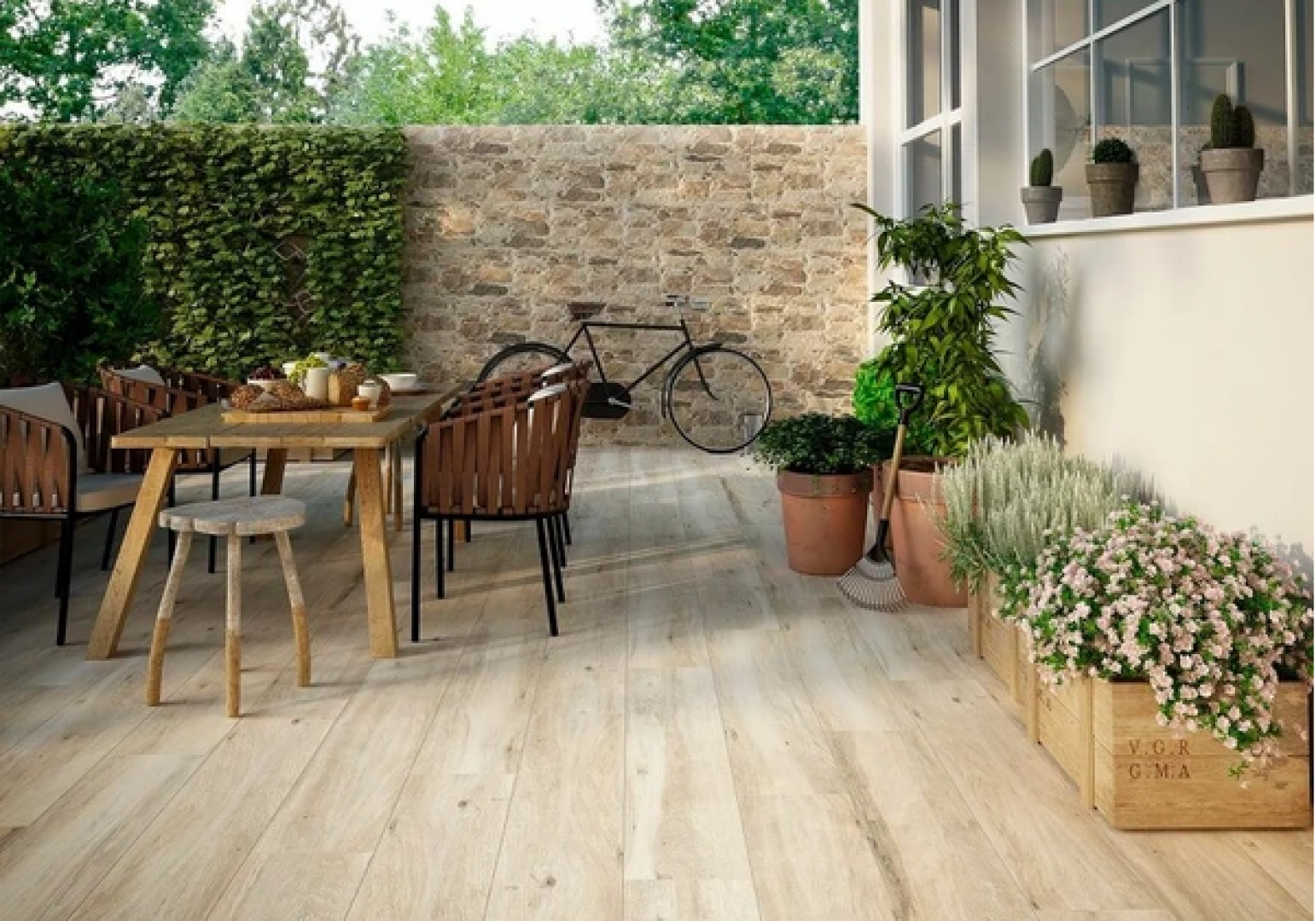 Lúc này, các loại gạch với họa tiết vân gỗ đơn giản, không quá màu mè, lòe loẹt sẽ là sự chọn lựa tuyệt vời nhất. Chúng sẽ giúp mang đến một không gian ấm có nét không khí đậm nét hoài cổ.