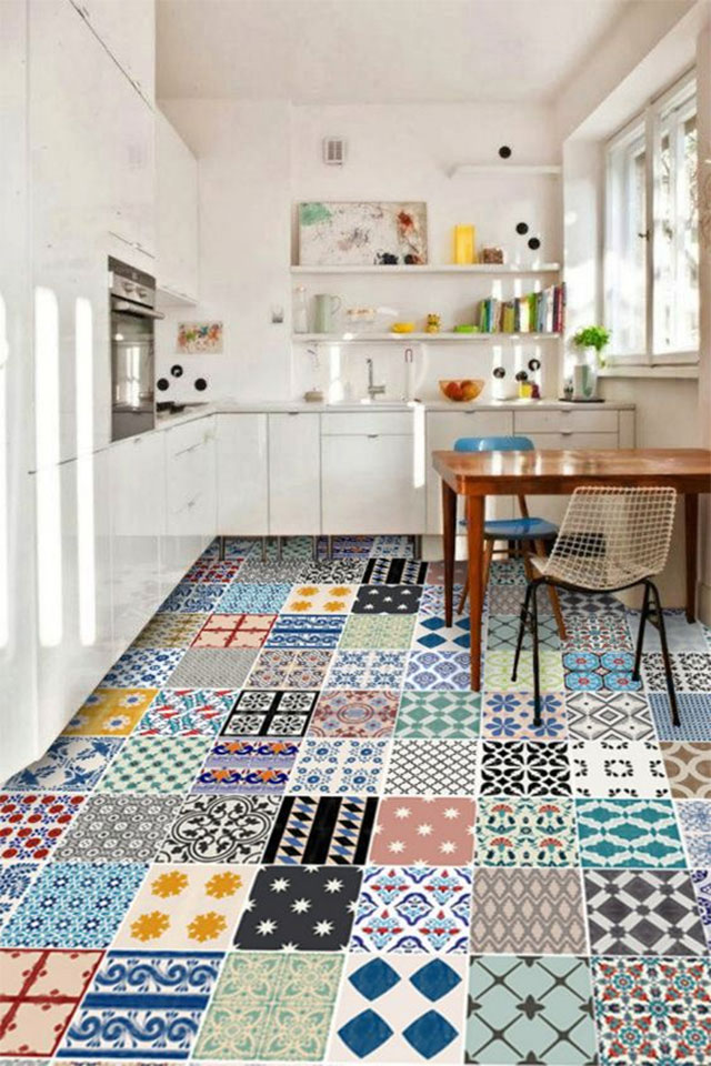 Phá cách với sàn gạch hoa văn độc đáo cùng màu sơn tường màu trắng khiến căn bếp của bạn độc đáo hơn bao giờ hết.