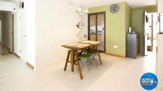 Màu gạch đơn sắc kết hợp với màu Frost White (OW041), điểm thêm màu Spring Thaw (43P-1P) tạo nên không gian rộng rãi, thoáng đãng.